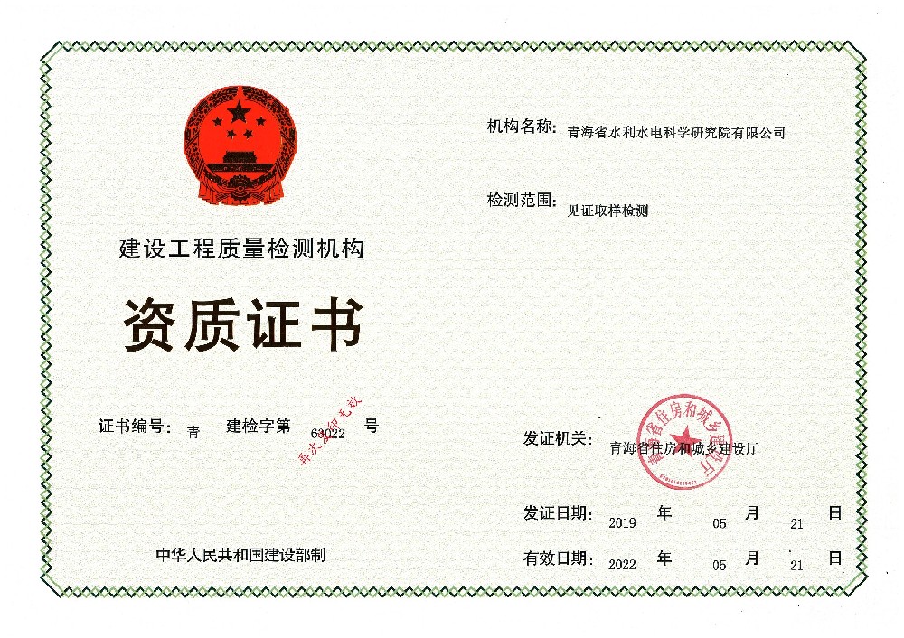 • 水利工程質量檢測單位資質等級證書(金屬結構類)